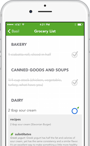 Say you're baking cookies, and you just mixed in the brown sugar. Tap it in the ingredients list, and Basil will cross it out and turn it gray. When you move on to the next step, you'll be focused on the ingredients you still need to use—and not the ones you don't.
