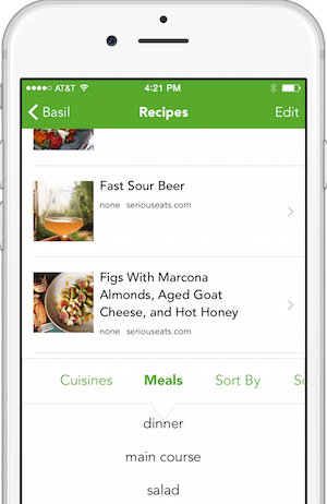 Tell it your preferred units (U.S. or metric units), and Basil will convert units for you. It'll even convert volume measurements ("2 teaspoons paprika") to weight measurements for metric users. Just like that.